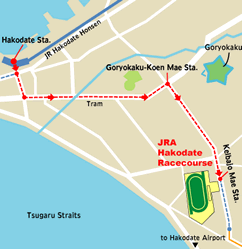 - Approx. 20 minutes by bus from JR Hakodate Station. Approx. 25 minutes by Municipal Railroad (Tram) from JR Hakodate Station.