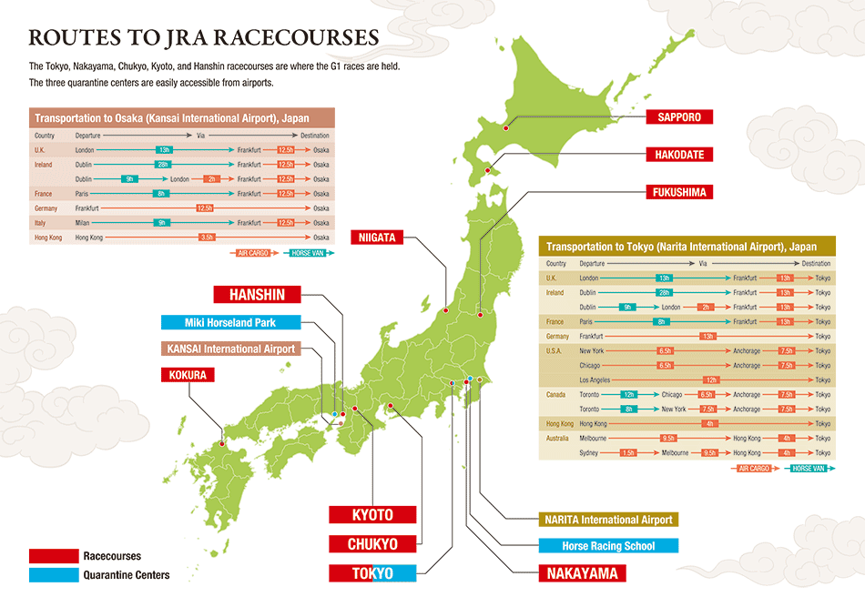 | To Hanshin Racecourse: | 550km/343.5 miles | 10 hours |